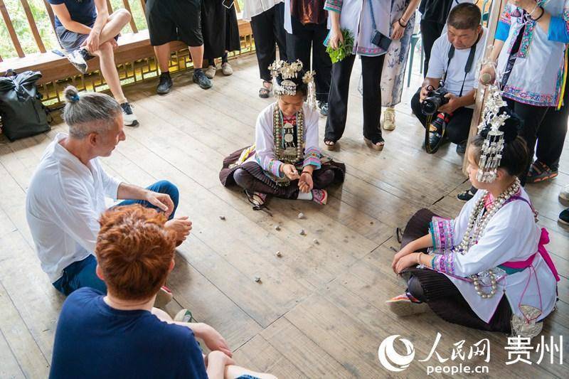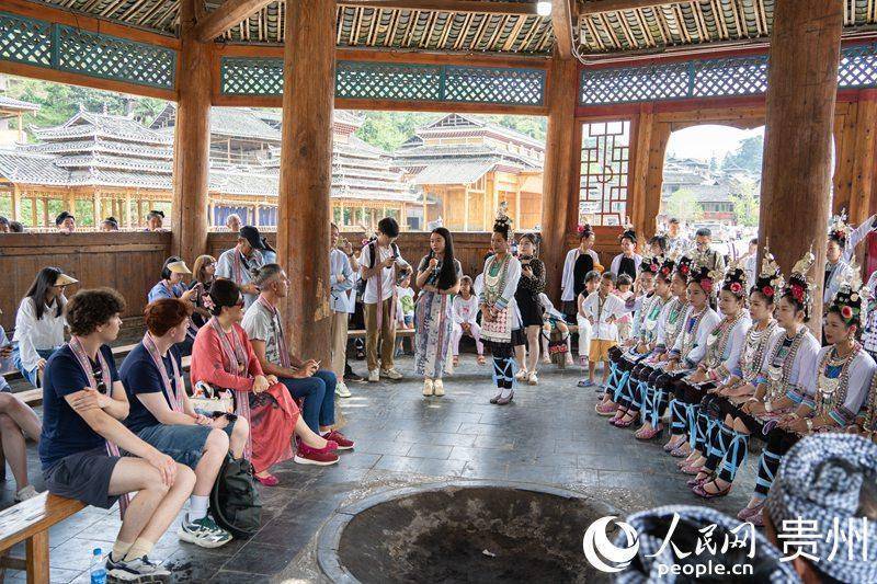 欧洲音乐人与侗族大歌传承人潘萨银花交流。人民网 阳茜摄