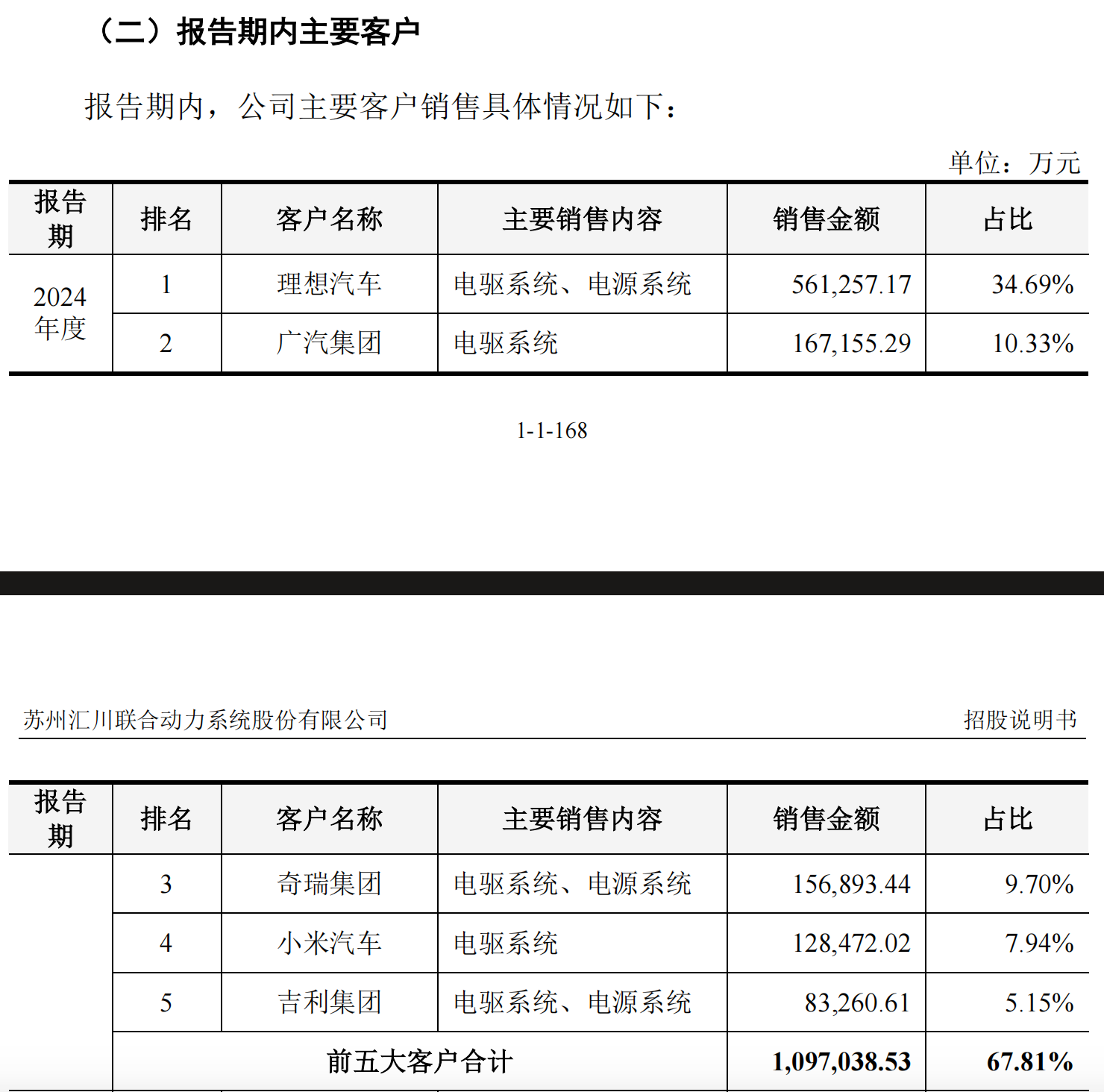 其中关于理想汽车作为第一大客户,联合动力解释称,理想汽车正式向市场交付首款车型理想One时即搭载发行人动力系统产品,双方开始合作时间较早,并形成战略合作伙伴关系。报告期内,公司适配于理想车型的电驱系统产品持续向理想汽车实现销售,2023年联合动力电源总成产品在理想车型实现批量供货,2024年公司适配于理想车型的三合一驱动总成产品实现批量销售,发行人的产品在理想车型的单车价值量有所上升。